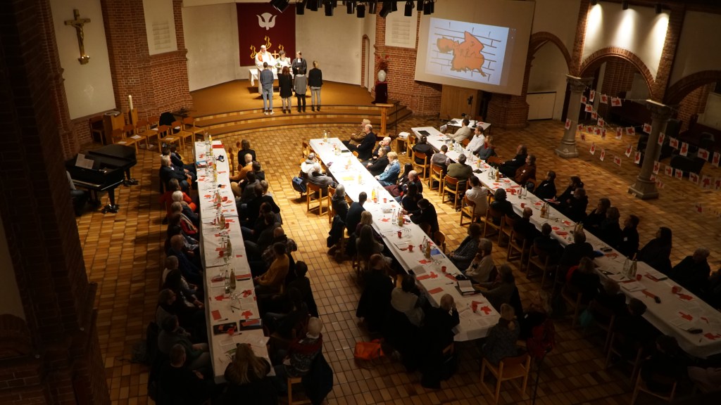 Was aus einem Umriss so entstehen kann: Hier eine Aktion im Synodengottesdienst des Kirchenkreises Berlin Stadtmitte am 15.11.2019.