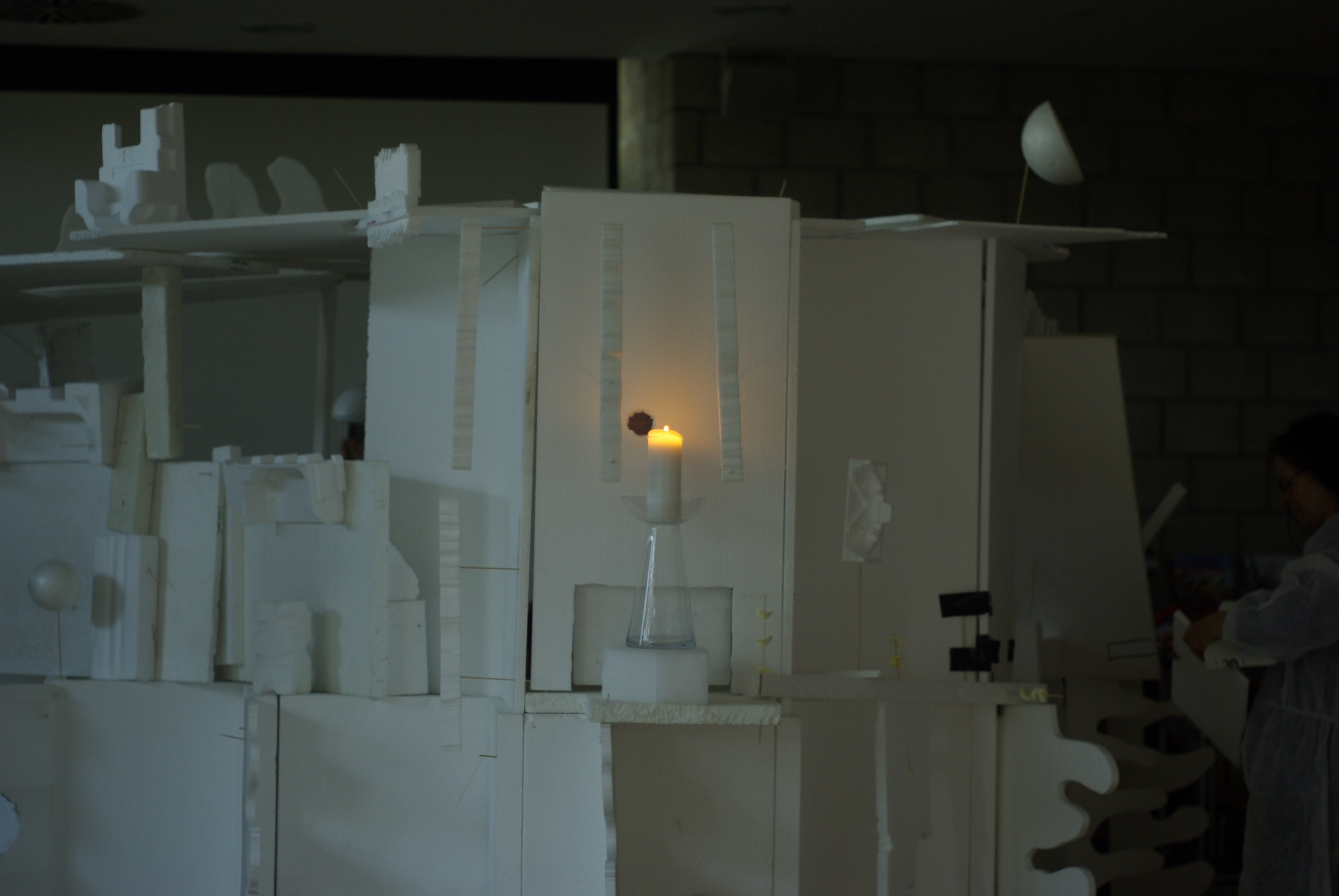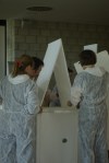 Bei meinem Spielraumtag am 29.3.2014 im Rahmen des Playing-Arts-Laboratoriums entstand in Teamwork diese/s geniale weiße Styropor-Haus/-Kapelle. Am Ende konnten wir sogar zu zehnt im Inneren Platz nehmen und zusammen essen: